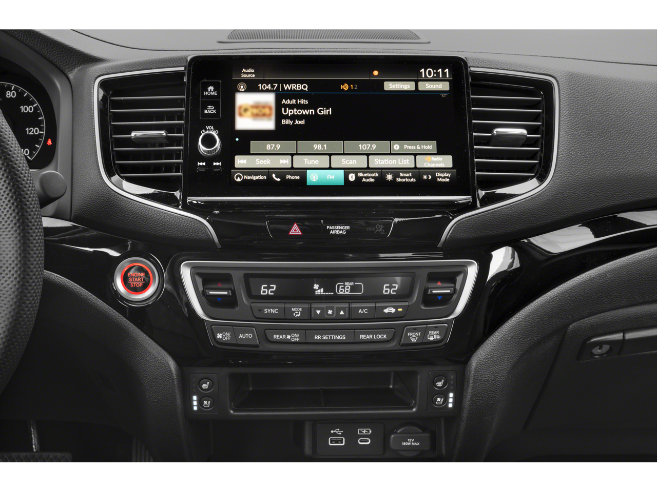 - Radio: 540-Watt Premium Audio System w/8 Speakers -inc: subwoofer, 9" color touchscreen, Bluetooth® streaming audio, Speed-Sensitive Volume Compensation (SVC), wireless Apple CarPlay/Android Auto compatibility, HD Radio and 2.5A USB-A data port in front console, HondaLink, Select HondaLink features are complimentary, 36-month complimentary trials are available for security and remote packages, A subscription is required to continue HondaLink services after the trial ends