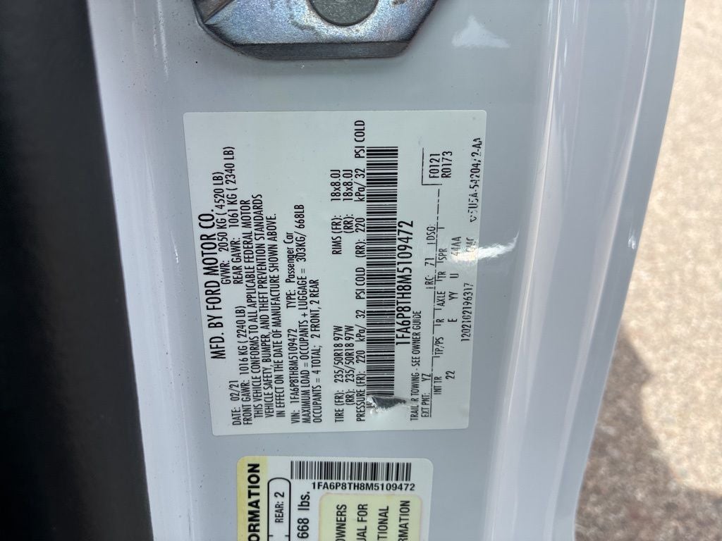 Clean Experian Auto Check, Arizona Vehicle, 2021 Ford Mustang EcoBoost, Blind-Spot Information System, Push Button Start, MP3 Single Disc Player, Backup Camera, Lane Keeping System, LED Headlamps, Alloy Wheels.